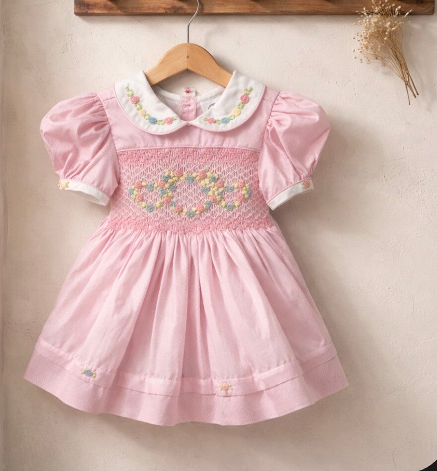 Heart Me Pink Smock Dress with Build It Petticoat - Floral Embroidery & Collar Design